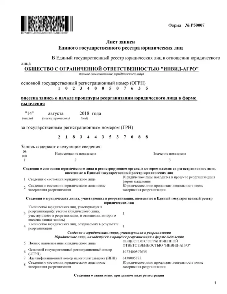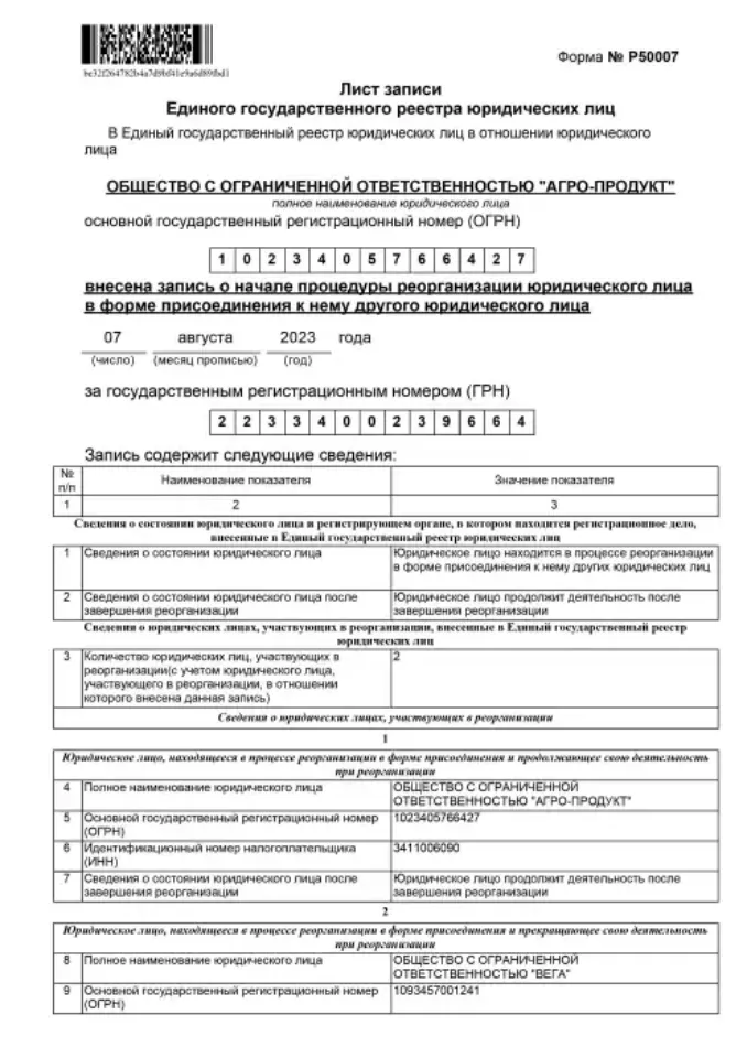 Реорганизация ООО (присоединение, выделение...)
